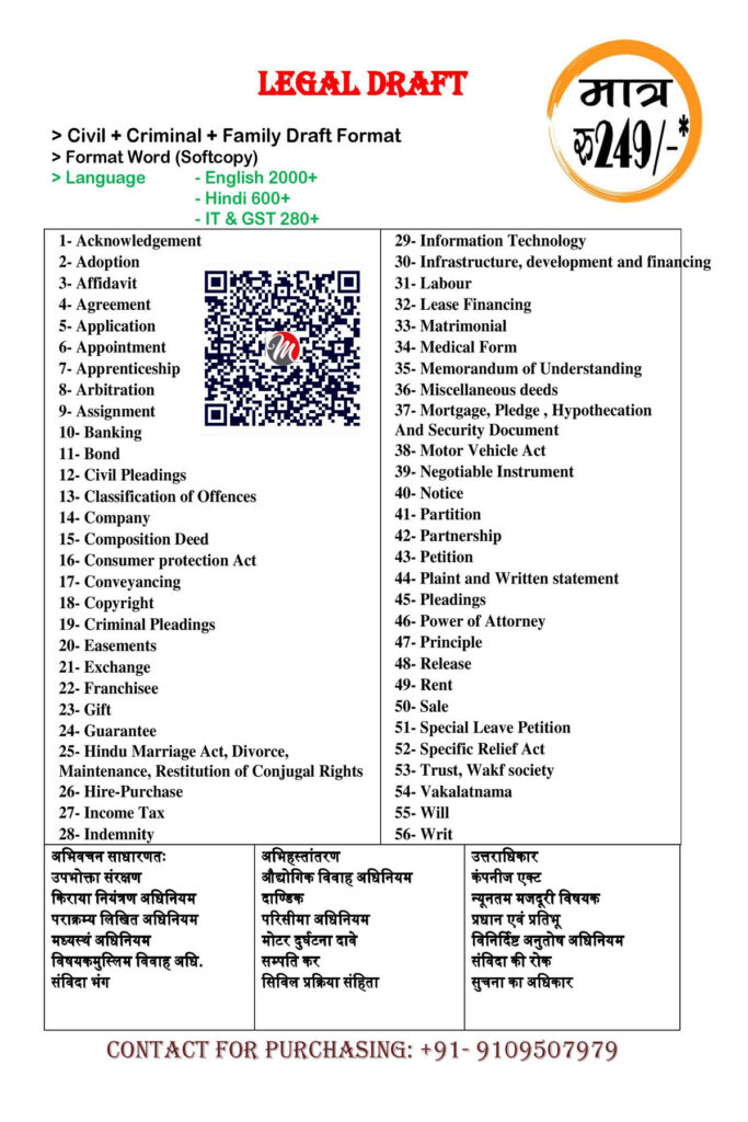 Are you a legal professional looking to streamline your drafting process and enhance your productivity? Look no further! We proudly present our comprehensive digital bundle of 3500+ ready-to-use legal draft templates, meticulously designed to cater to the dynamic needs of advocates, law firms, legal consultants, and corporate legal teams.
